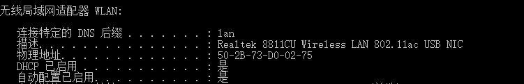 其中的物理地址即是无线网卡的ip地址。