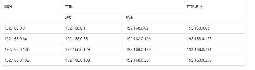 主机位右移2位。 子网掩码配置成 255.255.255.192