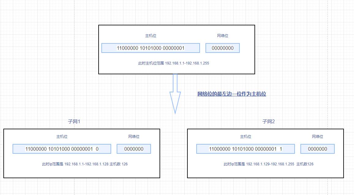通过将网络位向主机位借位的方式,能够对当前子网进行等长划分。