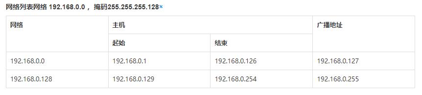 主机位右移1位。 子网掩码配置成 255.255.255.128