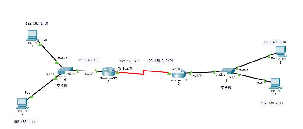 - 路由器A的左边网段为 192.168.1.0/24 串口ip 为 192.168.3.1
