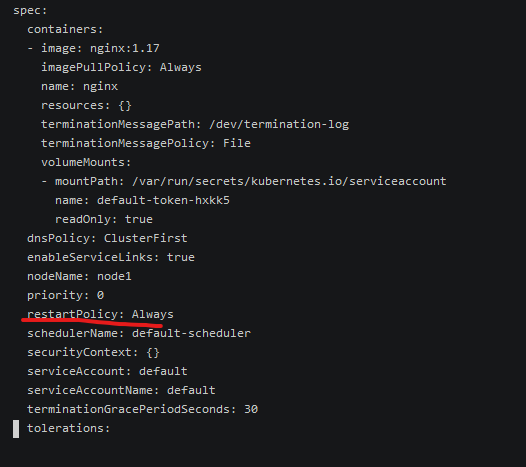 因为默认的重启策略是 restart 。查看pod 的详细信息可以看到