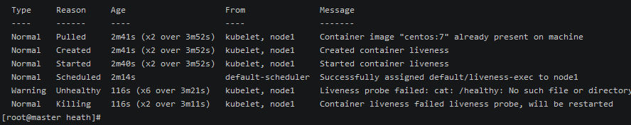 ExecAction 通过在容器内执行命令的方式,返回0 表示健康,否则不健康