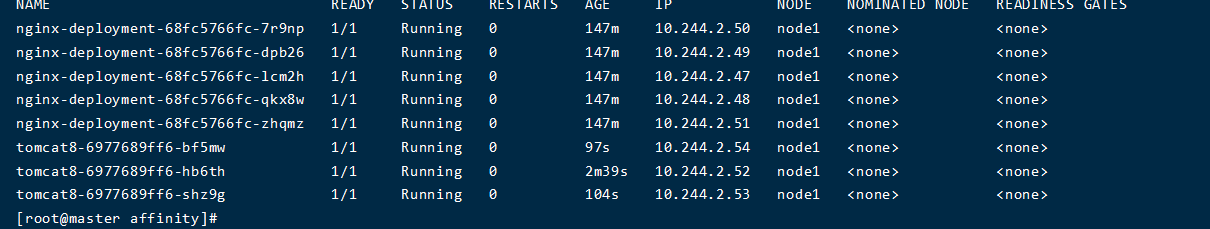 可以看到pod已经优先调度到node1 具有污点的节点上了;