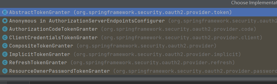 //调用token授权期执行授权方法 OAuth2AccessToken token = getTokenGranter().grant(tokenRequest.getGrantType(), tokenRequest); if (token == null) { throw new UnsupportedGrantTypeException("Unsupported grant type: " + tokenRequest.getGrantType()); }