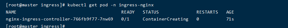 镜像比较大,如果阻塞可以手动拉取镜像 docker pull rancher/nginx-ingress-controller:nginx-1.1.1-rancher1