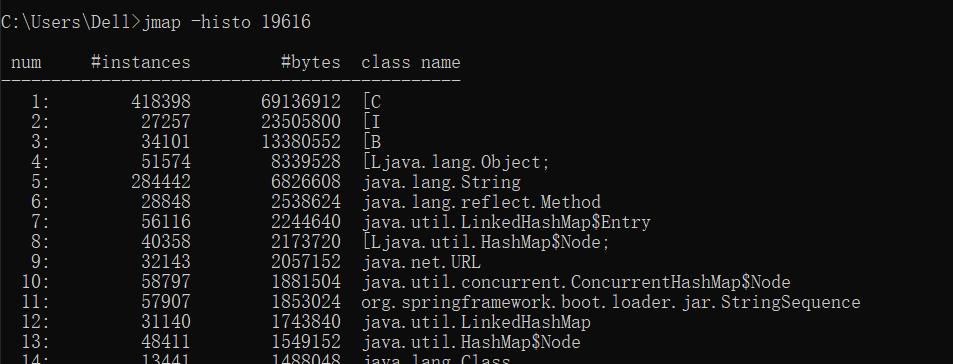 jmap -histo 19616