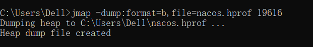 jmap -dump:format=b,file=nacos.hprof 19616