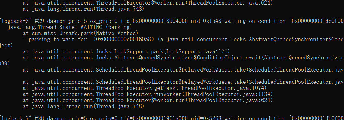 - jstack pid | grep tid(16进制的) -A 30 //查询此检查后30行的数据