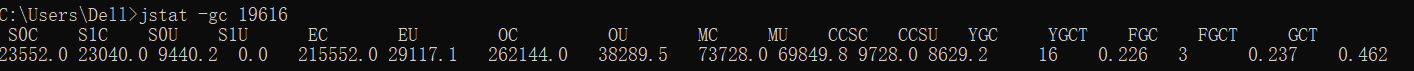 jstat -gcoldcapacity 16000 老年代内存统计