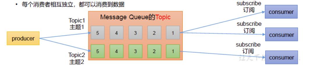 Topic 可以理解为一个队列,生产者向一个指定的topic中发送消息,消费者消费指定topic中的消息