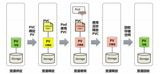 | Avaliable | 创建好的 PV 在没有和 PVC 绑定的时候处于 Available 状态。 |