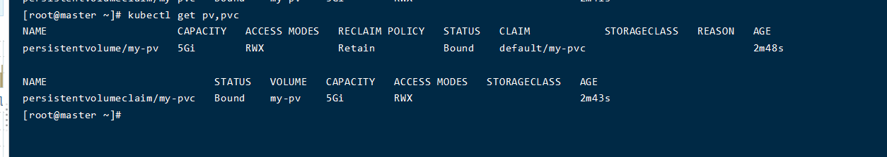 注意:当有pvc 使用的时候 看到pv的状态是 Bound ,当无pvc 使用的时候 pv的状态为 Released