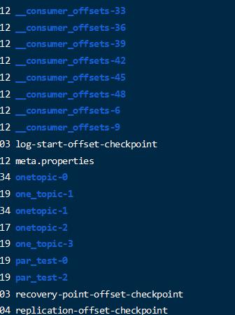 比如topic 为 onetopic ,那么分区0 到 3 的目录分别是 onetopic-0 onetopic-1 onetopic-2 onetopic-3