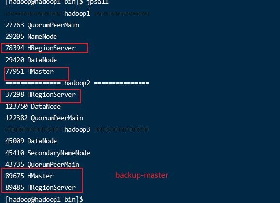 注意: start-hbase.sh 和 stop-hbase.sh 这2个脚本是管理整个集群的服务的。