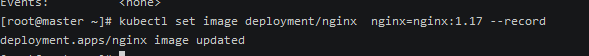 1 | kubectl set image deployment/nginx nginx=nginx:1.17 --record |