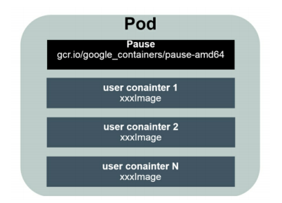 其中每个pod中都有一个被称为pause 的根容器;其他的容器称为业务容器,业务容器共享pause 容器的网络,挂载,ip等;