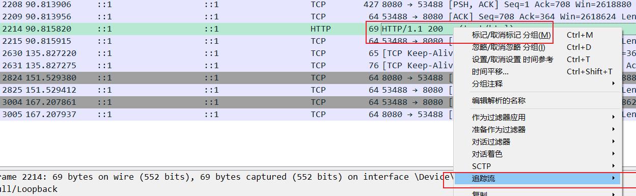 找到对应的http请求,选择追踪流