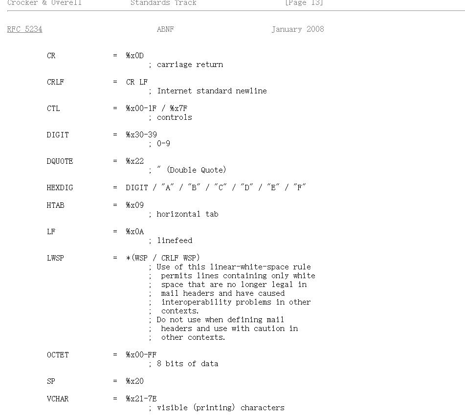 ABNF 是在 RFC 5233 中增加的. https://www.rfc-editor.org/rfc/rfc5234