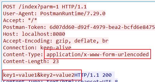 此种请求格式表示将form中的参数,使用urlencoded 的方式拼接成url 参数的格式放到请求体中传输。