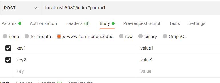 此种方式如果直接通过url可以携带所有参数,那么不用传请求体参数,当然也可以既使用请求体参数,也使用URL参数。
