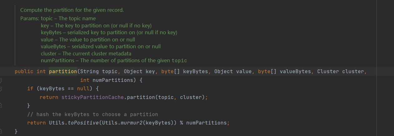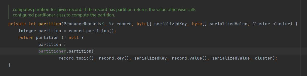 主要逻辑是,首先如果record 上有指定的分区id ,那么使用指定的分区id 。如果没有的话,那么