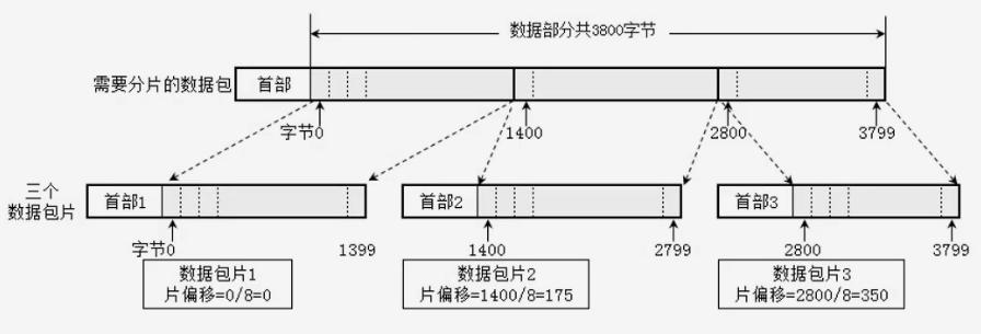 当数据包被切分成多个数据包(fragment)后,在每个片数据包的头部记录自身数据包在原始数据包中的偏移值。