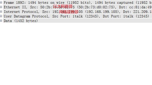 以太网帧的数据部分很多时候是由网络层传递的网络层的数据包。而网络层的数据包也有对应的头部和数据部分,数据部分是由传输层传递的。