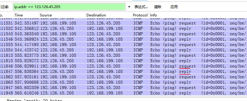 查看到响应IP,通过wireshark 抓取此ip的网络包