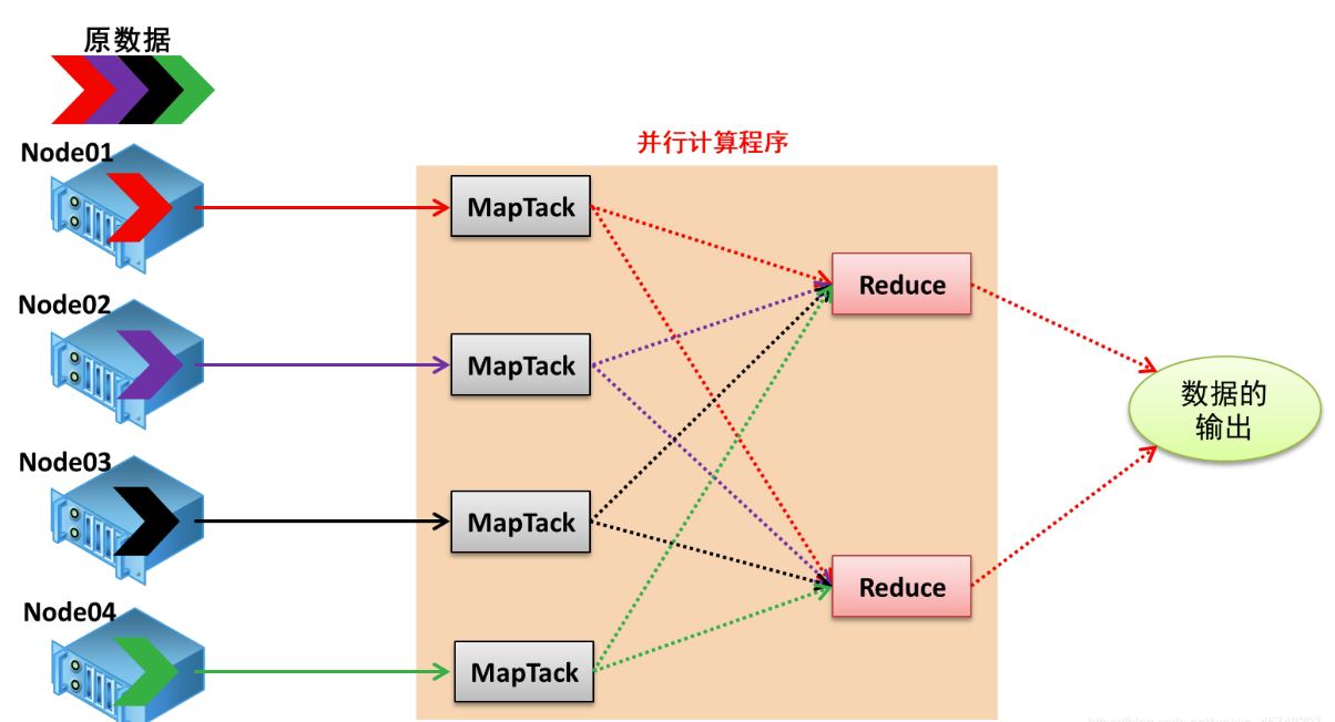 Reduce 阶段 map 阶段运行的多个MapTask都会生成一个独立的输出结果,但是这个结果并非最终的单一结果,reduce阶段就是将这些一小块 一小块的 小结果,合并成一个大结果。