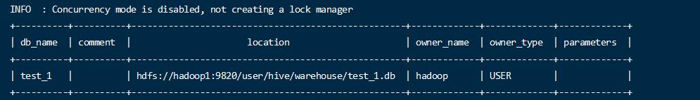 默认的会自动在 /user/hive/warehouse/ 下新建了一个 test_1.db 的文件夹。