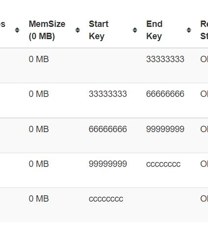 此规则分成了4个区间,根据对应的row key 分为4个区。