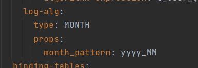 shardingsphere: #数据源信息 datasource: #名称为dbsource-0的数据源 dbsource-0: type: com.zaxxer.hikari.HikariDataSource driver-class-name: com.mysql.cj.jdbc.Driver jdbc-url: jdbc:mysql://127.0.0.1:3306/db1?serverTimezone=Asia/Shanghai&useUnicode=true&characterEncoding=utf8&useSSL=false username: root password: 123456 names: dbsource-0 #规则的配置 rules: sharding: tables: #order表的规则 t_order: actual-data-nodes: dbsource-0.t_order_$->{0..1} #分表策略 table-strategy: #标准策略 standard: sharding-column: user_id sharding-algorithm-name: order-alg keyGenerateStrategy: column: order_id keyGeneratorName: order-incr #user表的配置 t_user: actual-data-nodes: dbsource-0.t_user_$->{0..1} table-strategy: #标准策略 standard: sharding-column: user_id sharding-algorithm-name: user-alg keyGenerateStrategy: column: user_id keyGeneratorName: user-incr t_log: actual-data-nodes: dbsource-0.t_log_2022_0$->{1..9},dbsource-0.t_log_2022_$->{11..12} table-strategy: #标准策略 standard: sharding-column: log_time sharding-algorithm-name: log-alg keyGenerateStrategy: column: id keyGeneratorName: snowflake