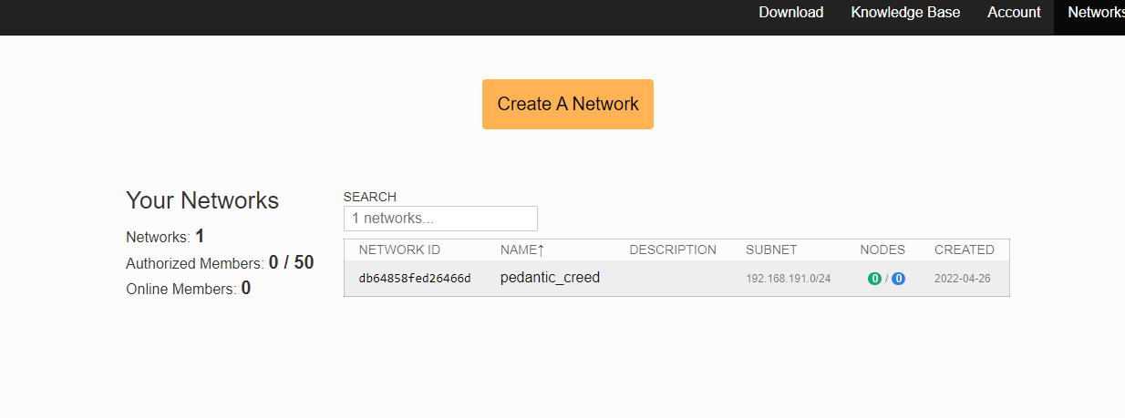 登录账号后,点击创建网络 就创建了一个网络,加入同一个网络的客户端就可以互相访问了