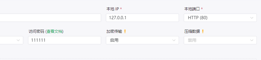 配置本地的IP 和本地端口号,访问密码是一定要设置的。因为目前选择的是一个启动访问认证的通道。具体要求可看文档。https://doc.natfrp.com/#/