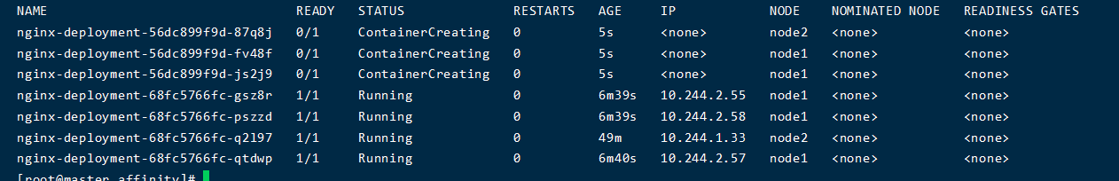 会发现当修改了镜像信息后,pod是逐步进行更新的,是滚动更新的。