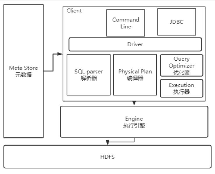 而数据 是存在hdfs中,在hdfs以文件的形式进行存储。类似于mysql的执行sql的过程一样,hive 发出的sql语句 ,要通过sql 解析器,编译器,优化器,执行器,最终调用执行引擎。
