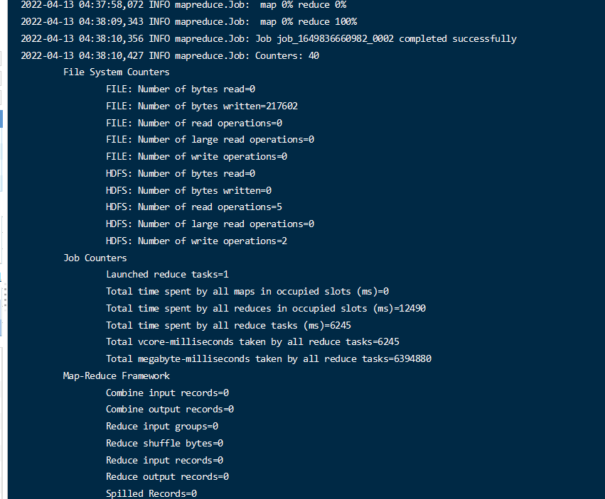 1 | hadoop jar $HADOOP_HOME/share/hadoop/mapreduce/hadoop-mapreduce-examples-3.1.3.jar wordcount /input /output |