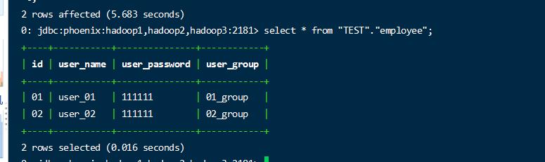 1 | sqlline.py hadoop1,hadoop2,hadoop3:2181 |