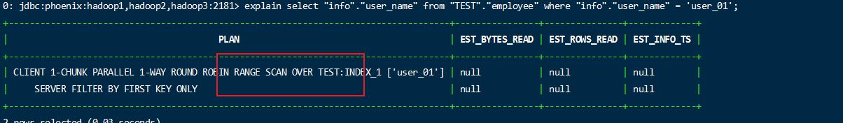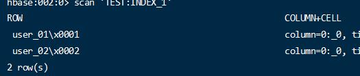 创建的全局索引会在hbase上创建对应的一个外部索引表。这里创建了一个 TEST:INDEX_1 的表,表的row key 为要创建索引的字段信息。