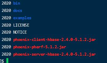 1 | tar -zxvf phoenix-hbase-2.4.0-5.1.2-bin.tar.gz |