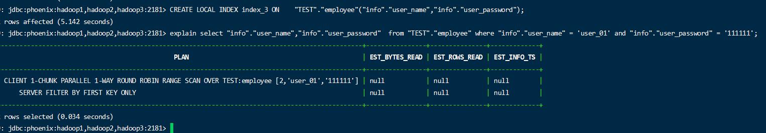1 | CREATE LOCAL INDEX index_3 ON "TEST"."employee"("info"."user_name","info"."user_password"); |