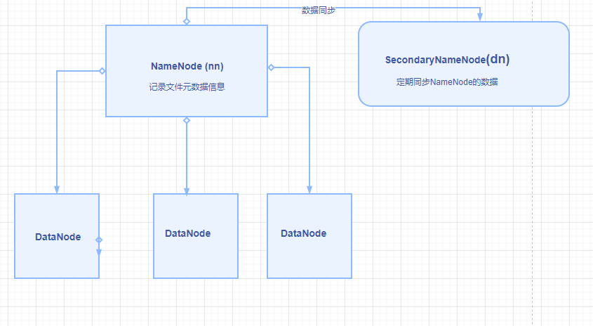 SecondDary NameNode(2nn): 定期对NameNode 数据备份。可以看做NameNode 的副本,防止NameNode 所在机器挂掉,导致服务不可用。