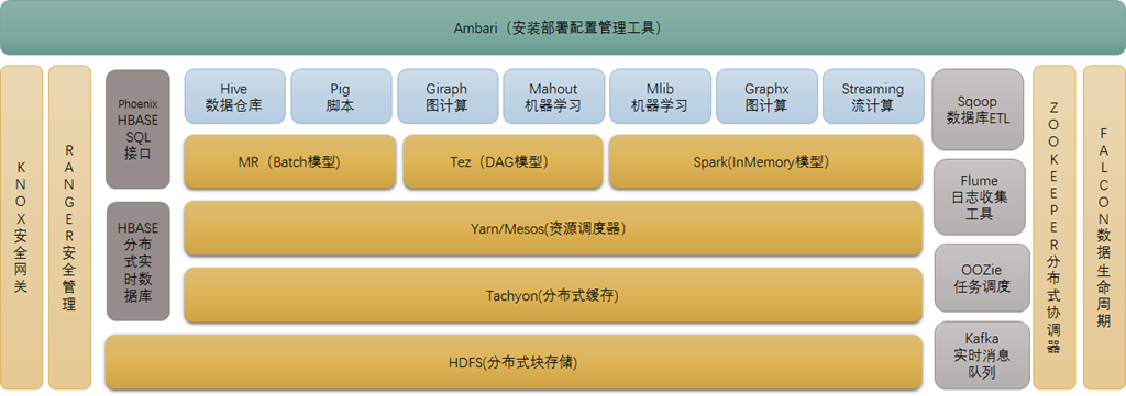 包含了多种解决大数据问题的组件和框架。